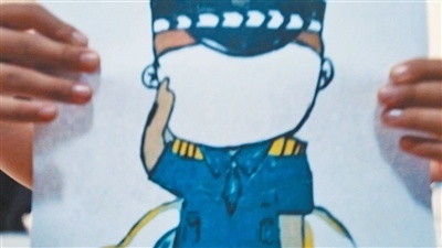 王警官儿子画的爸爸。 李 鹏摄
