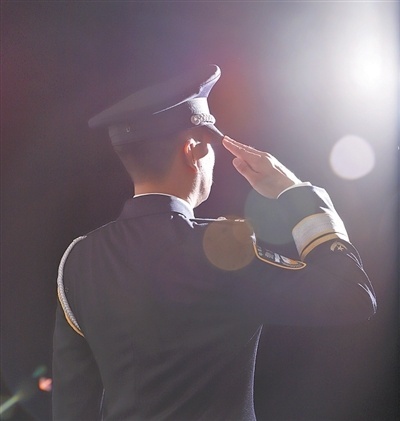 王警官的背影照。 翁 翕摄